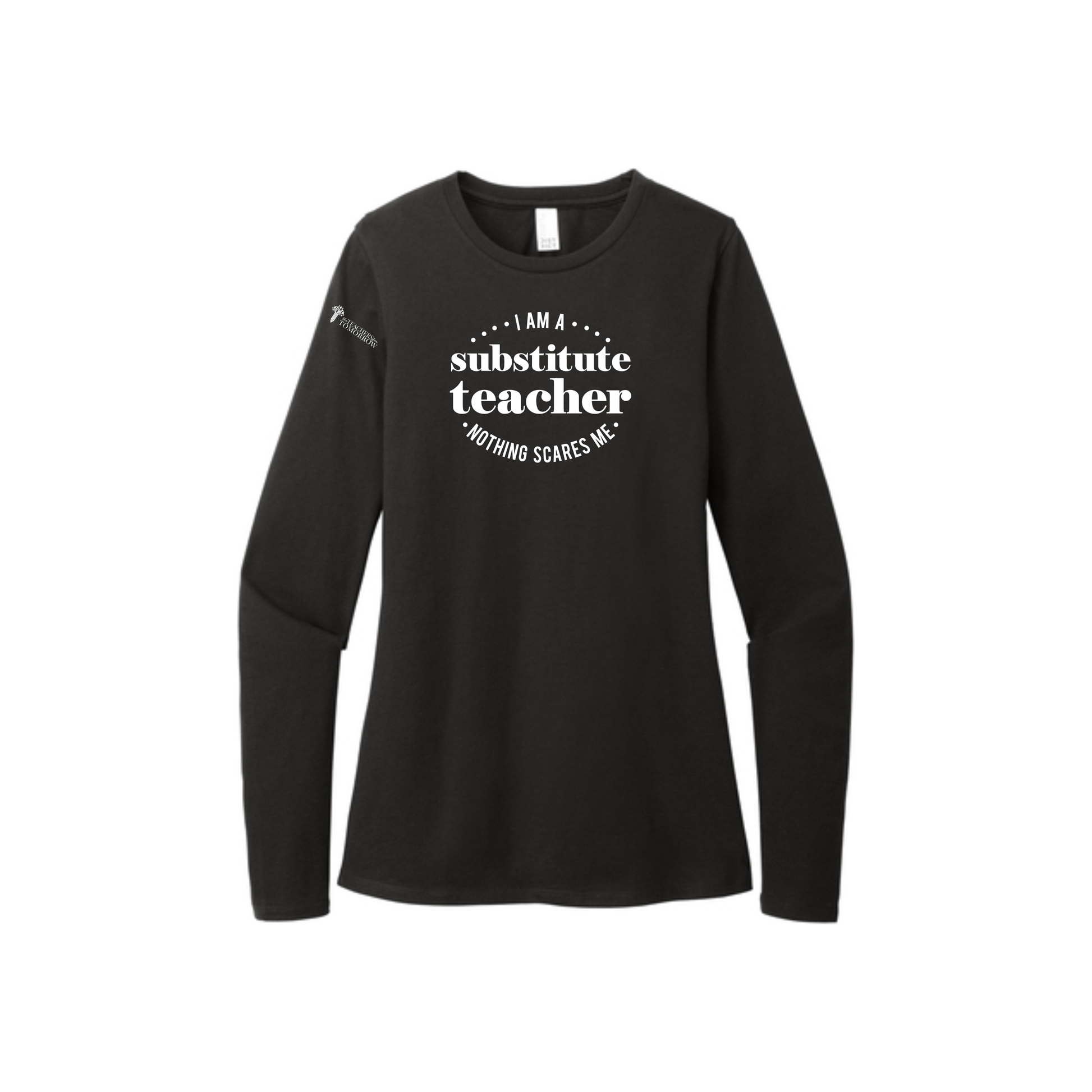 Soft and stylish, this is the long-sleeved tee perfected. The rounded Nothing Scares me logo is printed on the front with the Teachers for Tomorrow logo printed on the right sleeve.