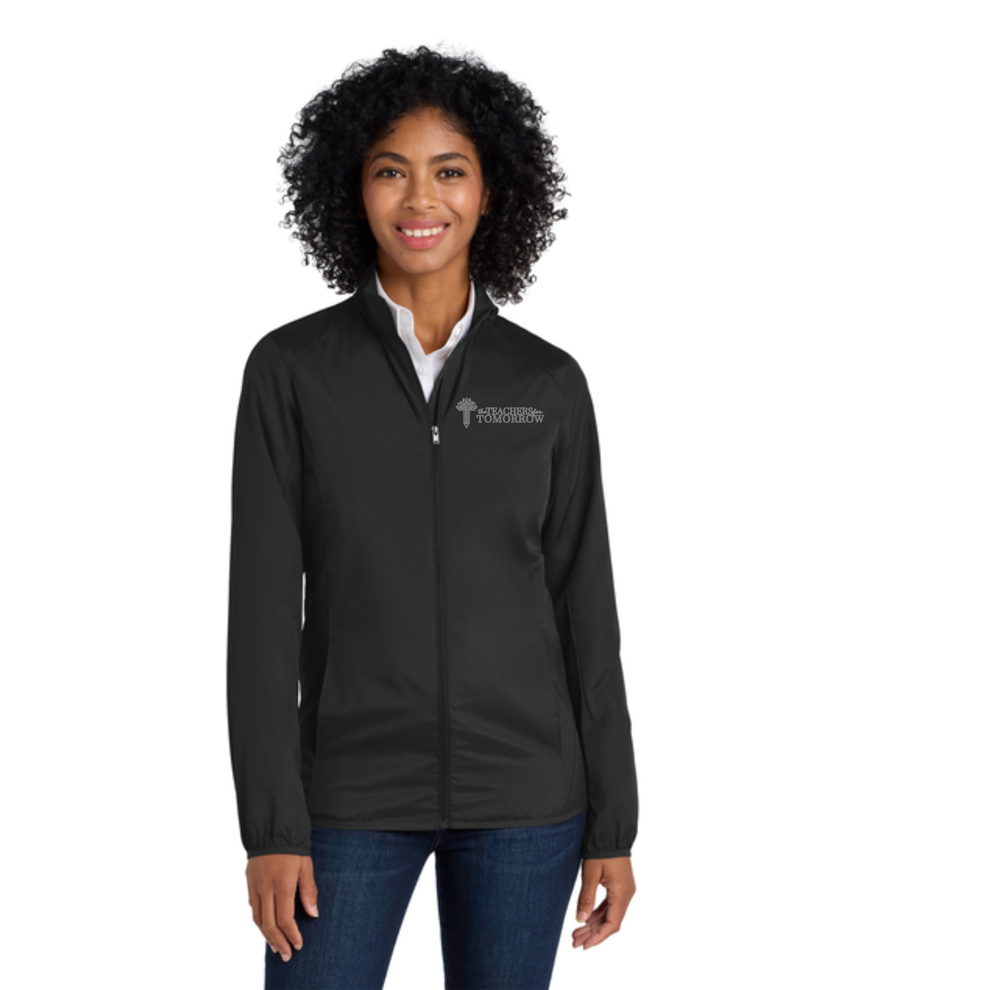 This Zephyr style merges wind- and water-resisting performance with a silky smooth hand. This unlined piece is easy to wear over base or thermal layers. Modern sleek details offer instant appeal. The Teachers for Tomorrow logo is embroidered on the left chest.