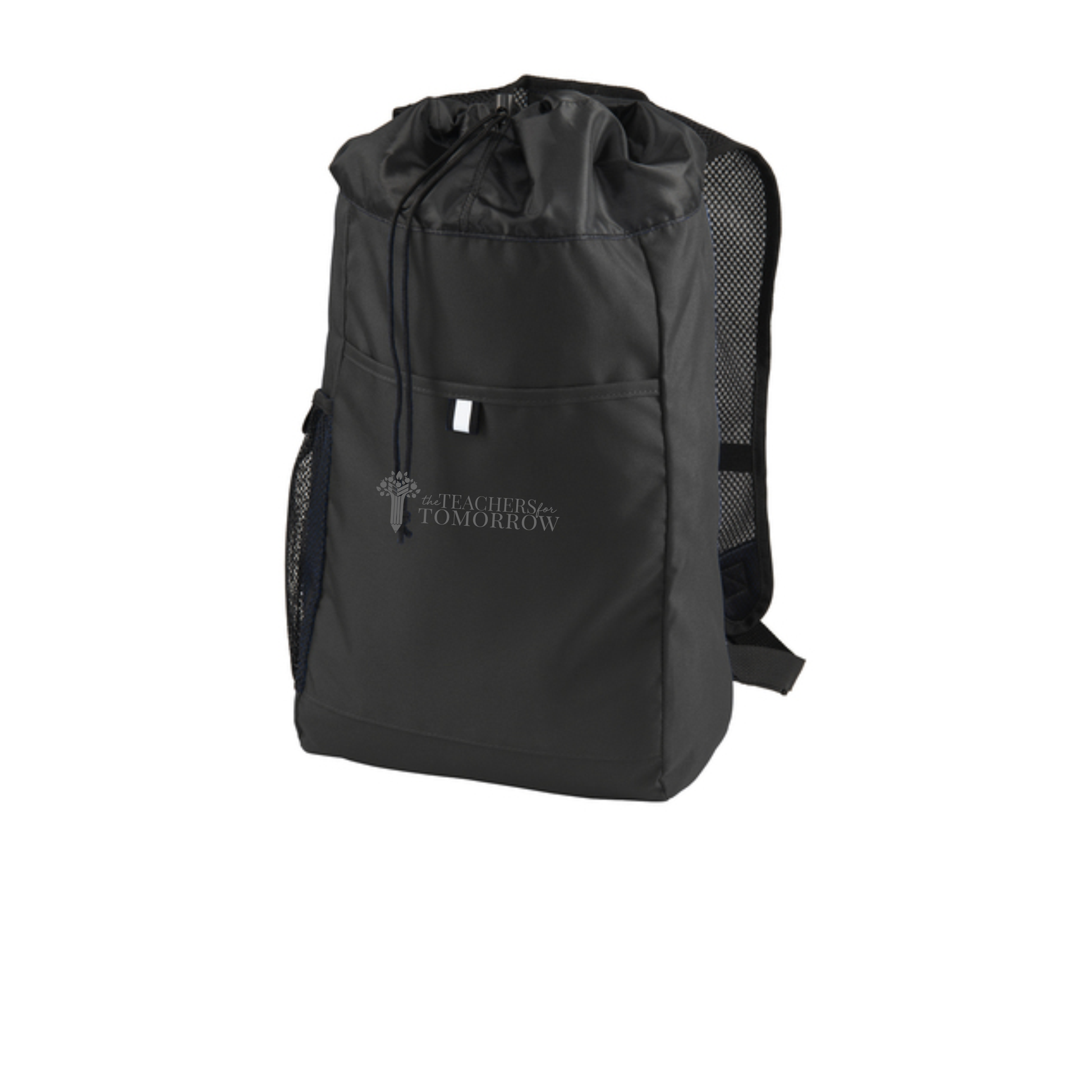 We merged the best features of a pack and a cinch to create this versatile backpack. The Teachers for Tomorrow logo is embroidered on the front.